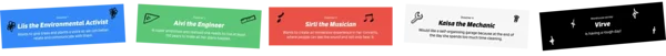 Ehitasime koolitusprogrammi üles elamusmänguna neljas vaatuses, mis viis osalejad väljamõeldud maailma. Peategelased selles olid: