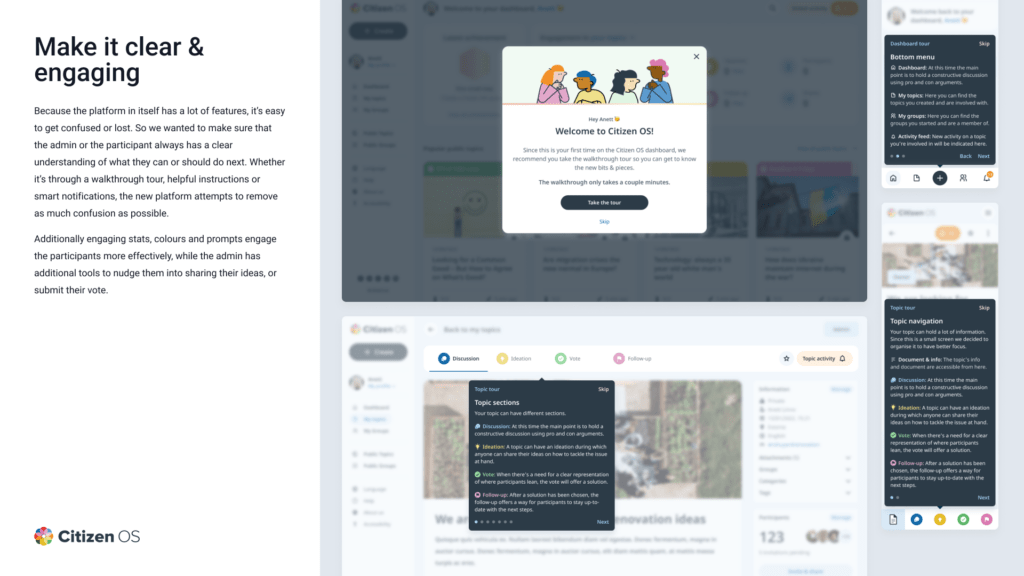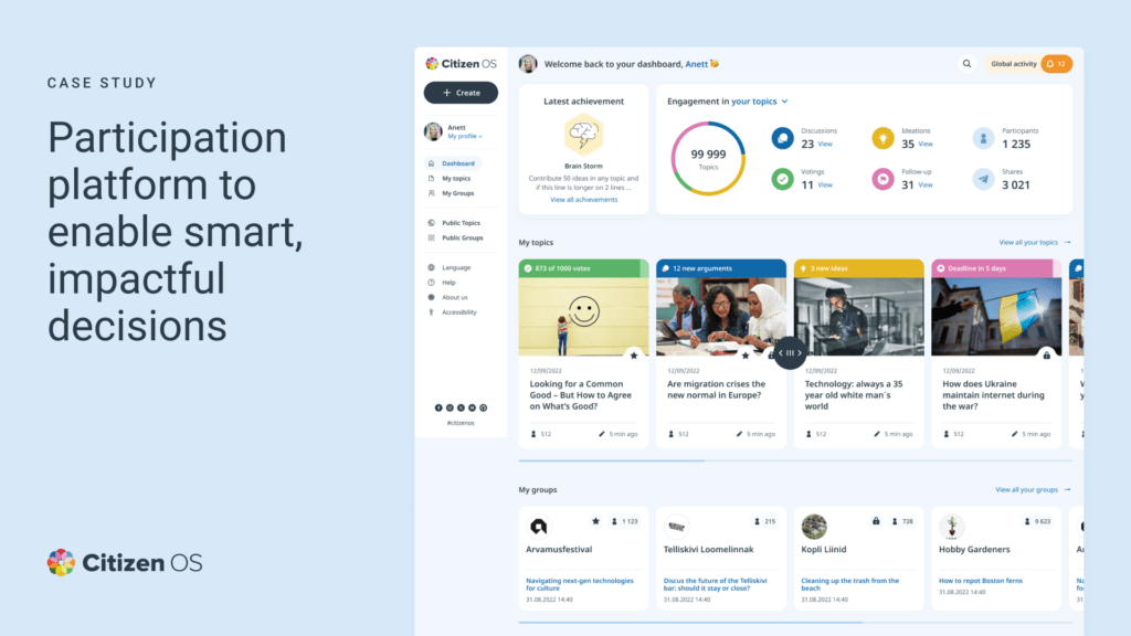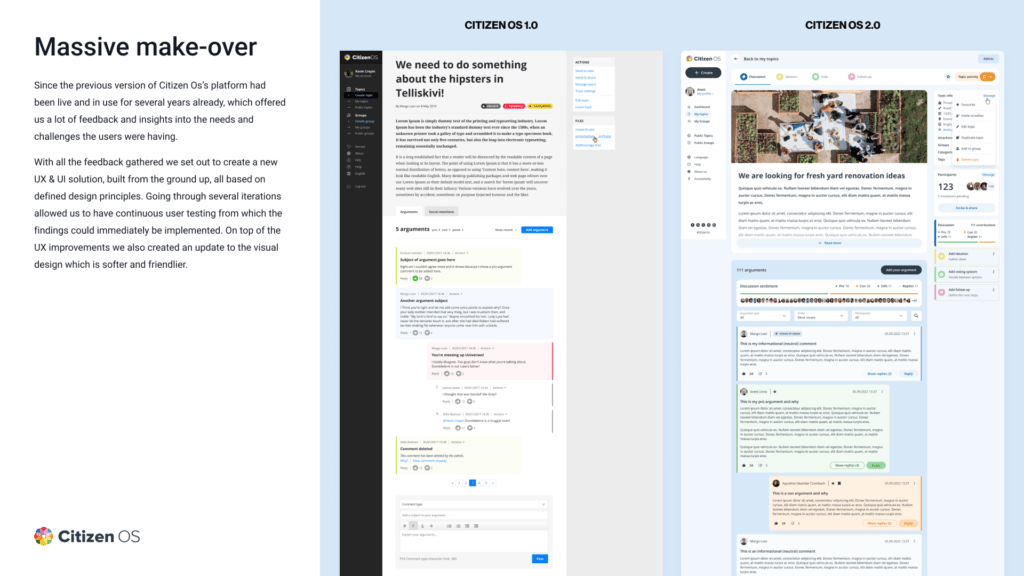 Uus uuenenud platvormi versioon. Citizen OS on koht mis julgustab osalema otsuste tegemisel kaasamise moel. Peamiselt mõeldud osalus-demokraatia formaadi levitamiseks läbi platvormi loodud funktsioonide nagu ideede kogumine, suhtlus, hääletamine jne.