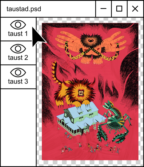 Illustratsioon toob kohutava õuduse Haapsalu Kuursaali juurde. Pildile on jäetud tühja ruumi teksti või muude graafiliste elementide jaoks. Lamenuku animatsiooniks ettevalmistatud tegelasi saab kasutada ka iseseisvate kujunduselementidena ning kliendile pakuti erinevaid taustu, mida sai kasutada erinevates kontekstides. Selline paindlikkus võimaldas festivalil luua mitmekülgseid video- ja trükimaterjale.