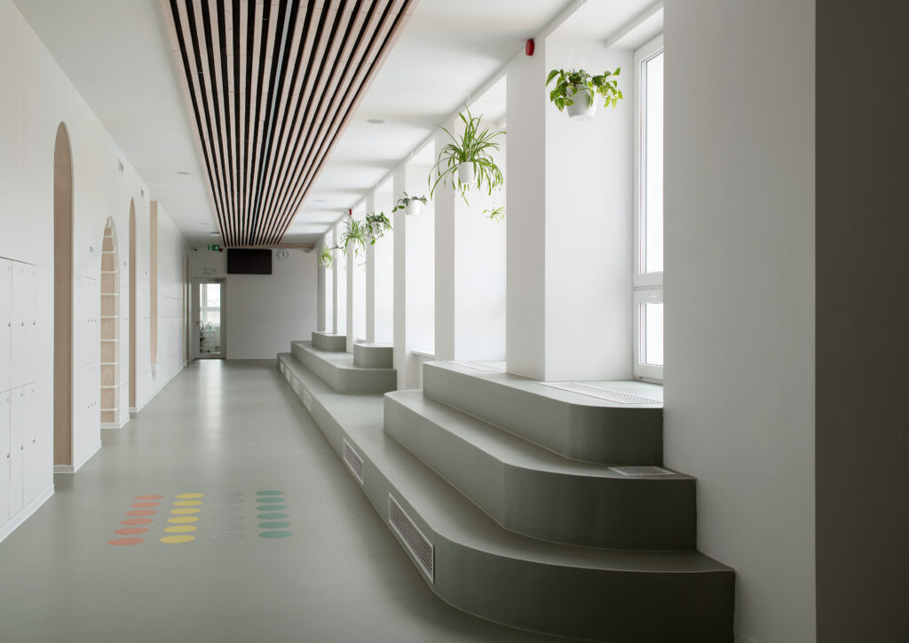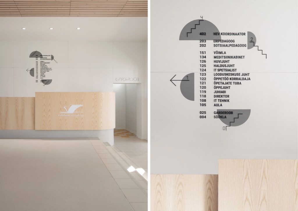 Viida- ja keskkonnagraafika hiljuti rekonstrueeritud Kuressaare Hariduse Koolile. Graafika eesmärgiks ei ole ruumis domineerida vaid pigem loob see täiendava kihi, lisades muidu valdavalt minimalistlikku interjööri detaili ja kontrasti. Graafika on inspireeritud koolimaja arhitektuurist, peamiselt sisearhitektuuris leiduvast kaare motiivist. Koolile disainiti unikaalne “naeratav” tunnusfont koos sobituva ikooniperekonnaga. Graafika abil on ruumi loodud erinevaid meelelahutuslikke- ja hariduslikke ajaveetmise lahendusi, mis sisearhitektuuriga üksteist täiendavad.
