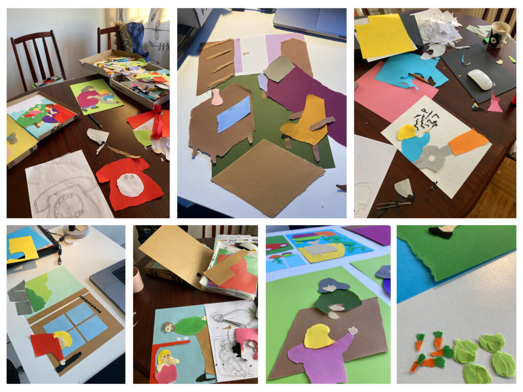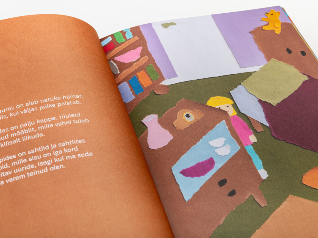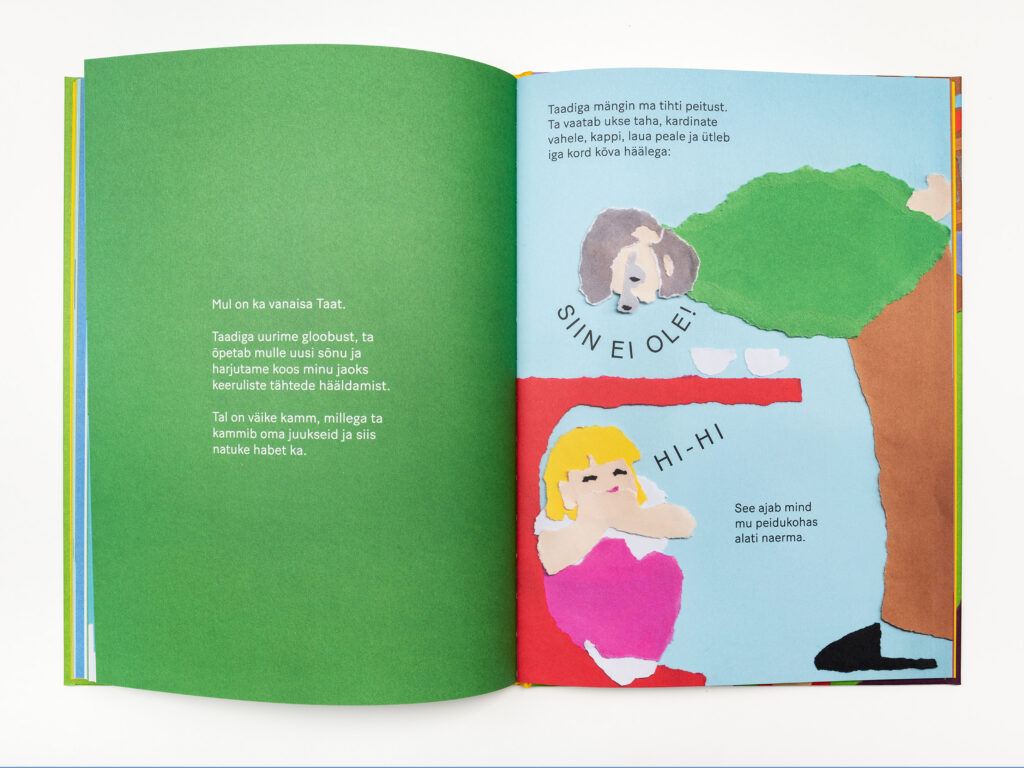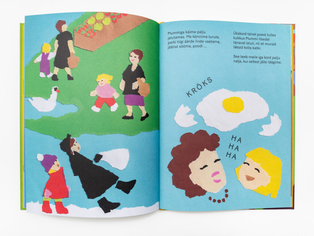 Vanavanematega koos veedetud rahulikest hetkedest kõneleva raamatu illustratsioonid on tehtud käsitsi, rebitud paberi tehnikas. Skaneerimisel ei ole piltidele kaanele avaldatud survet, mistõttu heidavad detailid ruumilisust rõhutavaid varje.