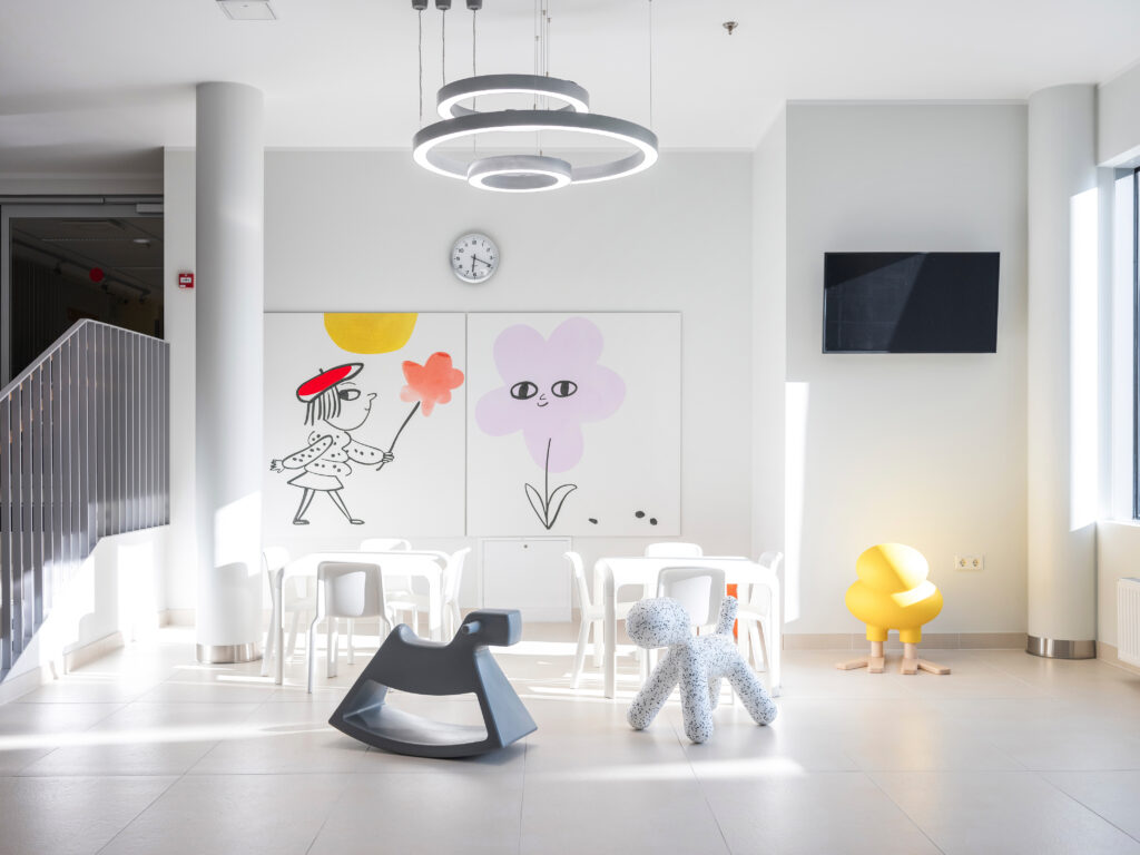 Kes sõi siili kirsid ära? Kuhu kaob hiigeljänes igal neljapäeva õhtul? Miks sõprus alati võidab? Tartu Ülikooli Kliinikumi lastekliiniku valged seinad on nagu raamat, kus on olemas illustratsioonid, aga jutt tuleb endal mõelda. Mida vahvam seiklus, seda õnnelikum lõpplahendus! Enam kui 200 ainulaadset tušši ja akvarelliga loodud tegelast 600 ruutmeetril. Ruumigraafikast alguse saanud projekt, mis töö käigus muutus osaks üldisest lastekliiniku visuaalsest indentiteedist.
