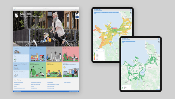 Võitsime eelmisel aastal Tallinna 2035 Arengustrateegia (https://strateegia.tallinn.ee) veebilehe eest European Design Awards’i hõbeda. See oli koostööprojekt Disainiosakonna, Stuudio Stuudio ja Inphysicaga. Rahvusvaheline tunnustus on kindlasti märk sisulise ja vormilise poole õnnestumisest, kuid selle projekti puhul võib kiita ka tööprotsessi ja sisukat usalduslikku koostööd tellijaga.